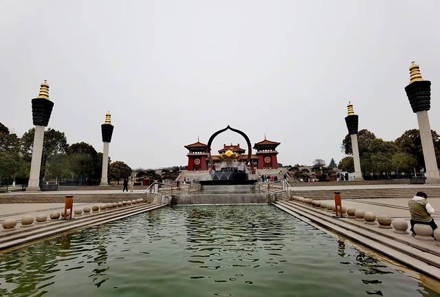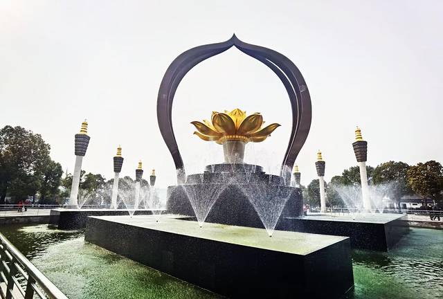 宝莲寺除了这6个中国之最外,圣莲广场中的“卍”纹水池、金色宝莲、八正道立柱,天龙八部广场中的万佛塔、幢经柱、八位护法神,还有其他地方,都满满地蕴含着佛教中“一花一世界,一叶一菩提”的经典故事,还深深地诠释了佛经里“六度八正道,一花一菩提”的设计理念。看到有人在静心抄经、有人在诵经礼佛,有人在上香祈福,有人在沉思冥想,我的一颗心仿佛静了下来,原来的急和躁,在这里瞬间被静止了。