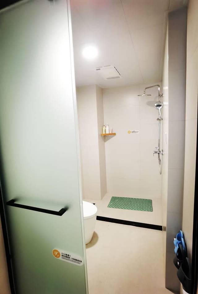 2、不防滑。淋浴房是敞开式的,没有做隔断,干湿没有分离,有安全隐患!简单点搞一个浴帘,防止水滴外流,也是可以防患于未然的。