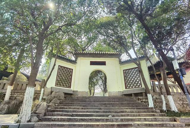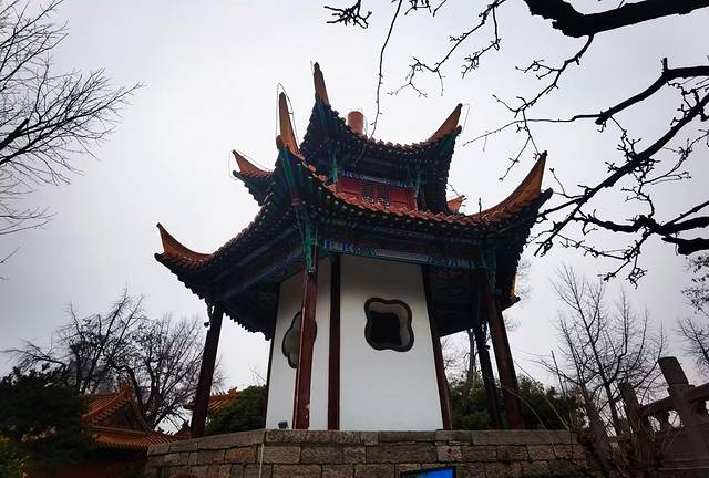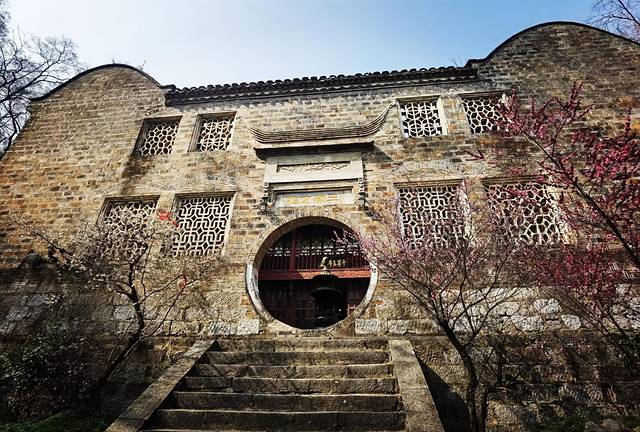 3、怡亭。怡亭是一个没有柱子、也没有楹联的砖亭,东面和南面各有一个拱形窗户,东面刻有“东阁迎曦”四字,南面刻有“怡亭”两字,西面是入亭的大门,门上刻有“西山枫云”四字,北面背靠青山,这个亭子的一旁种植着琅琊山的“镇山之宝”——欧阳修亲手种植的欧梅树,是赏梅的绝佳之处。