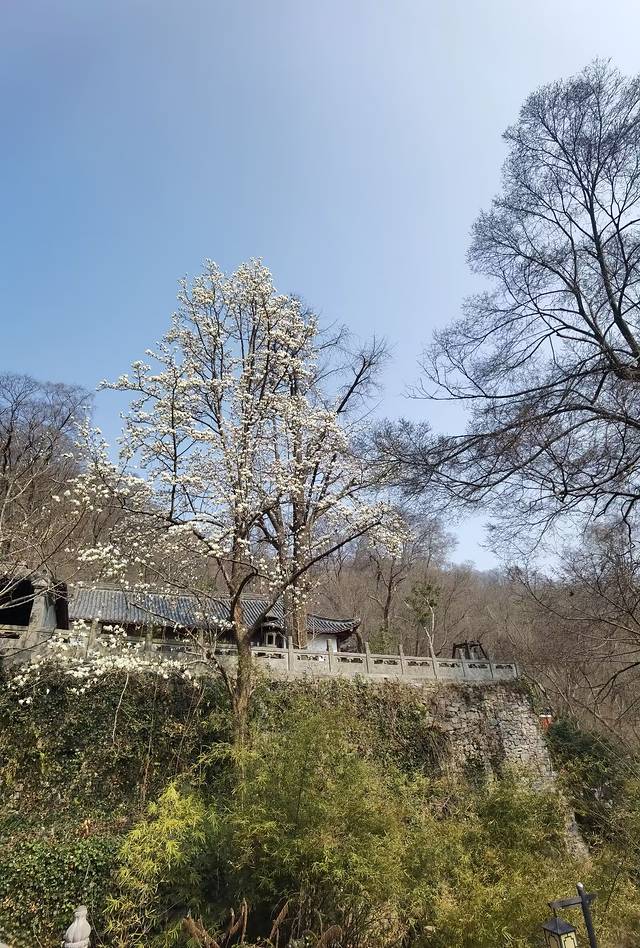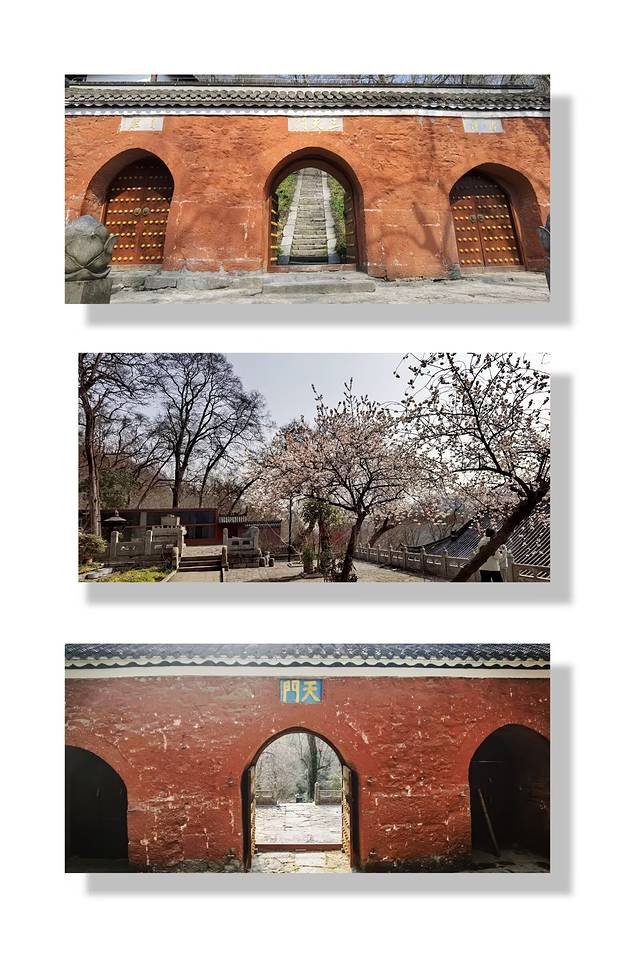无梁殿殿前殿后草木茂盛、古树参天,我们去的时候,玉兰、杏花开得正兴,探花正当时!周边还有不少古迹可寻,走过路过不可错过。在无梁殿的南山坡上,有明代万历二十七年修建的“三天门”山门,恰好与无梁殿上下相对,在无梁殿的东端山路边有唐代崖刻3块:一块是元和四年四月十五日乡贡进士卢弘宣、监察御史里行刘约与滁州刺史赵元阳同游时的镌刻,一块是元和十五年夏秘书省校书郎郡守钱可复的续刻,还有一块是滁州刺史李幼卿的题诗,除了这些古迹遗址外,无梁殿内还保留着大量石构件等附属文物。