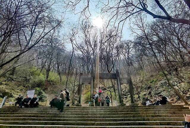 你一定会问:你走的哪条道?我来告诉你:我们先前做过功课,结果是白做了。我们先走了琅琊古道,然后上南天门的时候,开始随心所欲了!我们走过了著名的天蹊云径、走过了明嘉靖年间开筑的二九径、走过了727级的天级,还走过了一个人都没有的乱石堆......最终!我们有点乱走的结果是:胜利地穿插到了南天门。阿欧~