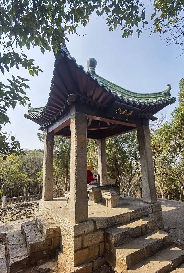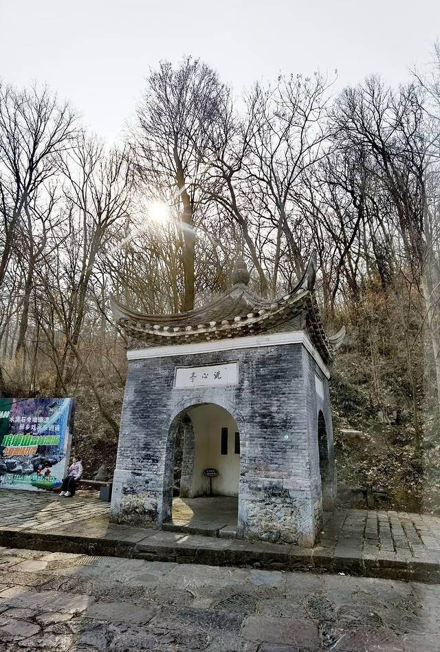 6、洗心亭。洗心亭是一座上下内外都是砖瓦结构的亭子,一面背山,三面有门,外形好似一只展开羽翼的禽鸟,守候在琅琊古道的路边,进山的香客走到这里,大都气喘吁吁了,此时步入洗心亭内歇息片刻,定定心、洗洗尘、加加油,精神会更加饱满,精力会更加充沛,然后再从古道继续进发,朝山拜佛。