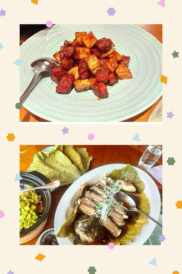 这家中餐厅位于淮海东路29号苏宁凯悦酒店60层,与酒吧合为一体,据说是徐州最高的餐厅,餐厅里可以俯瞰徐州全景,也可以看日落,各个方面、各个环节都没得说,在这样的地方享受云顶体验,人会变得很文雅、很绅士,请客吃饭太有面子了。推荐两道菜:①羊方藏鱼。鳜鱼+羊肉,就是一个鲜字,这是一道徐州名菜;②彭城双椒牛肉粒。大块的牛肉粒外脆里嫩,有奶香味,选用的是谷饲牛,这是中餐厅的一道招牌菜。综合各项考评指标,这家中餐厅我给★★★★★。
