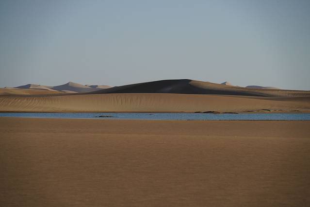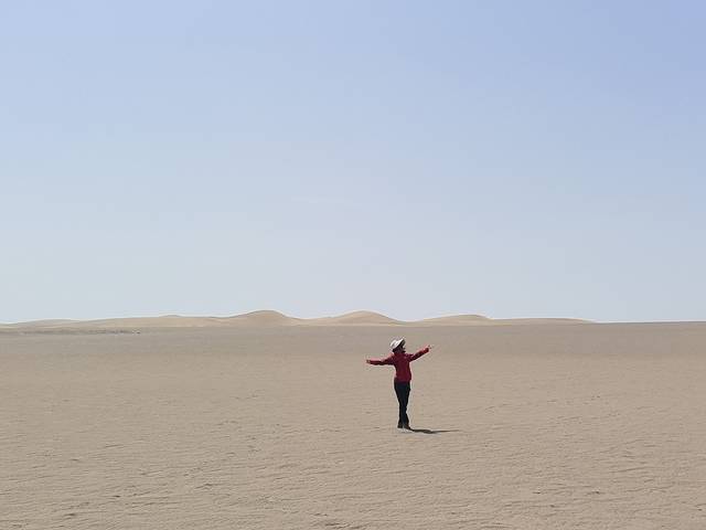 回到营地一夜无话,真的一夜无话,因为,我睡了个美美的一觉。不像第一晚戈壁的坚硬石头顶着后背,这一晚睡在沙子上,“柔软”是大自然“席梦沙”的代名词。