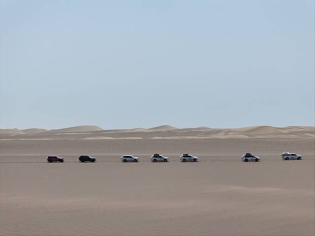 再炎热的天气也挡不住女人们对美的向往,红豆姐的绣花长裙飘逸在沙丘之高峰,黄明师父带着一众“勇士”站上车顶放起狼烟,何等青春,何等畅快,何等豪情。