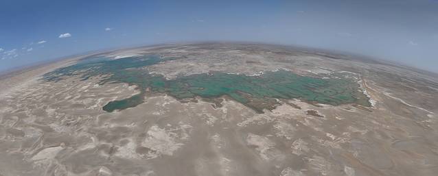 继续前行路上我们迎来了无边沙漠里的一抹难得的湖水——千岛湖,淡蓝雅致、一望无边、清澈温暖、轻轻浅浅,司机大哥们冲下去洗澡、踩水,像极了一群孩子撒欢,人类天生对水就格外喜爱和依赖。天气太热了,这样的温度车胎都受不了,所以安营扎寨在千岛湖附近,司机大哥们玩水的同时,几个伙伴躲在帐篷里打牌,帐外异常炎热,帐内格外火热,面红耳赤地争论间,已然分不清是因为心中的炙热还是因为这炙热沙漠。【这是行程中最“热”的一刻】。
