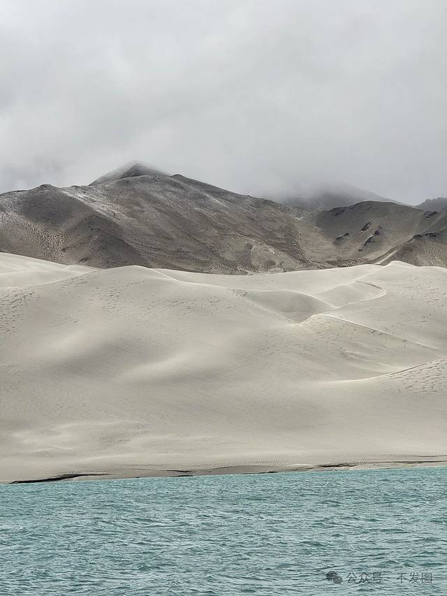 第一面,俯瞰。他居然在飘雪,但满眼的蓝绿很难忘,偶有云缝中漏下的阳光,照在湖对面的白沙山上,惹得人想飞过去疯狂踩沙。