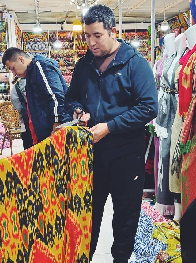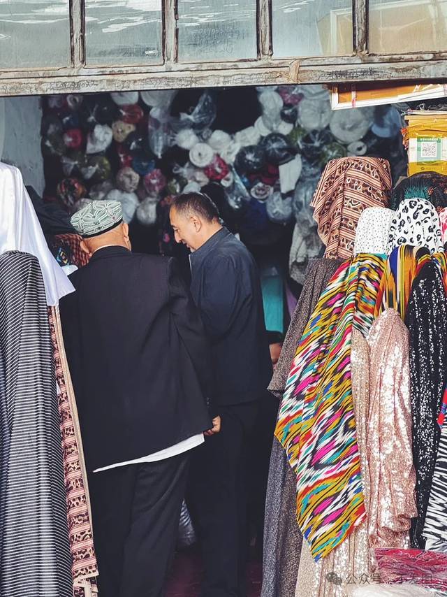 在喀什,流行一件事,去扎帕尔库其市场扯几米艾德莱丝绸,就地找间裁缝店,做裙子/马甲/衬衣/帽子/包包…… 很荒谬但也很奇妙,往往是你说你的,但裁缝他有他自己的想法,最后的成品就非常有趣了。