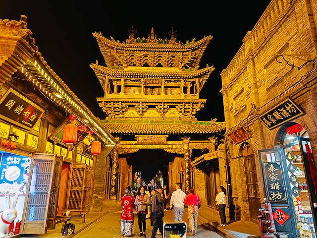 平遥 古城地标性建筑——市楼就在这条街上,白天和晚上的景色都很美,很多汉服小姐姐会来这里拍照,渐渐成了 平遥 古城的一大特色。