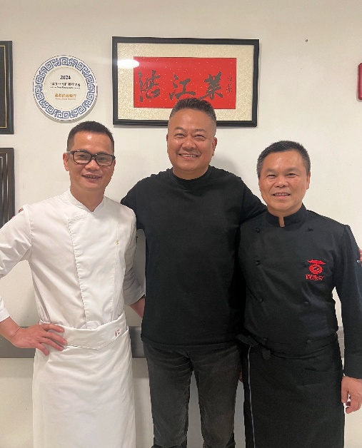 左起:北京瑰丽酒店中餐行政总厨谭仕业;知名美食纪录片导演陈晓卿;湛江御唐府出品总监高飞