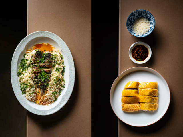 此次全新菜单以“本味”为灵魂,从静谧冷菜至镬气热馔,每一道都映照出湛江风土的真实轮廓:硇州冻鲍鱼,以清酒慢煮后的原汁啫喱托底,轻覆蚝粉,显露大海静水深流之美;蚝汁官渡生蚝,外酥内嫩,咸鲜滚烫,封存镬气亦释放风味的对撞;榄角葱油蒸金鲳鱼,风干与蒸制技法交叠,陈香入骨,尾韵绕梁;安铺鸡饭,以“减法”理念还原白切真谛,一刀见火候功底、一箸见温润人情。
