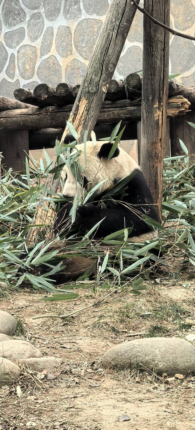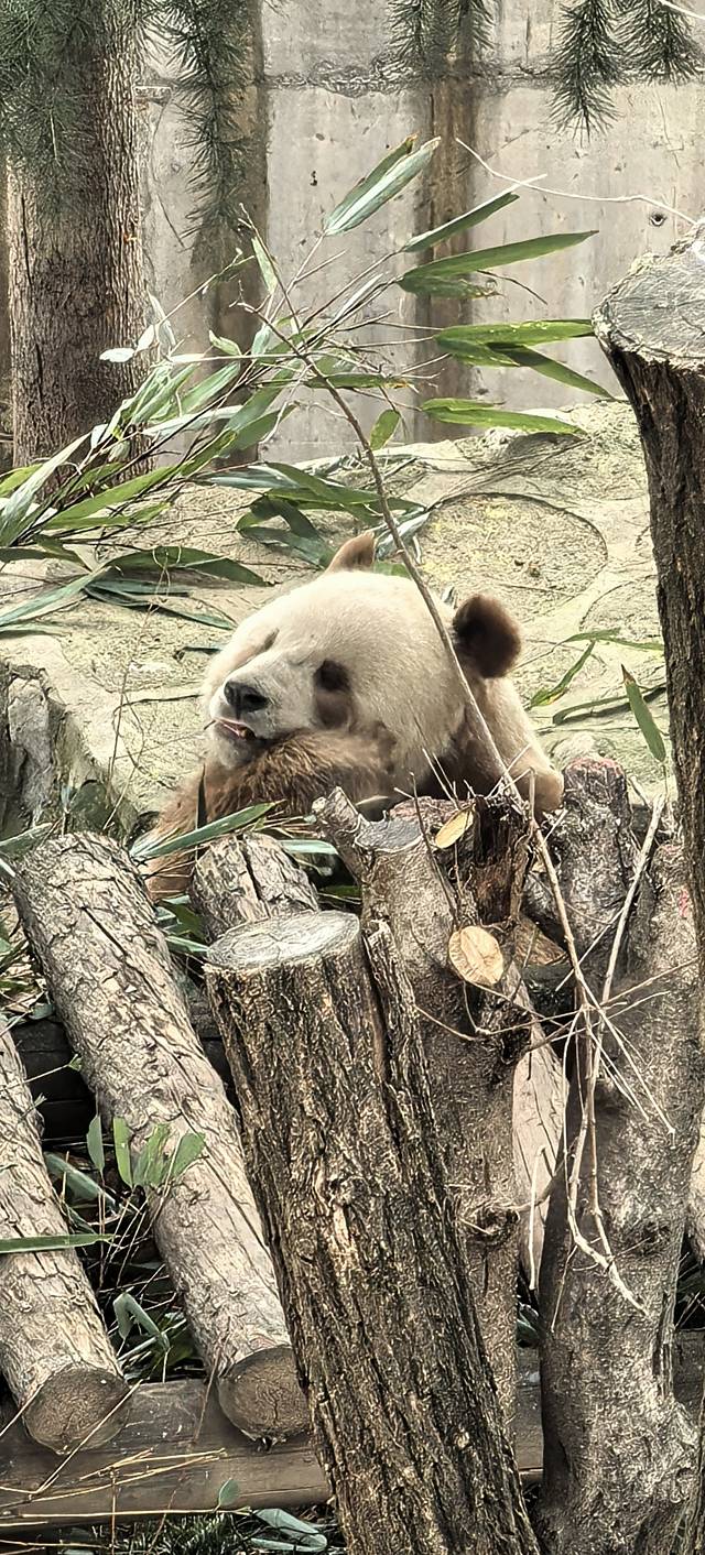 最上面是羚牛的场子,下面三个圆房子都是熊猫的住所,基本都是独栋,很是舒服,有太阳晒,有玩具耍,还可以不停地吃播。