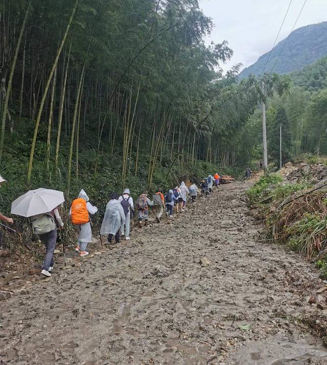 刚到起点的时候特别不合时宜的下起了大雨,我们在一个废弃的桥洞里面躲雨。雨停后大部队浩浩荡荡的开始出发,雨后的上山路特别泥泞,费力气且容易摔跤。(一定要带登山杖)