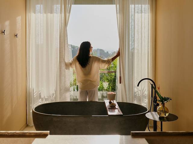 曼达里拿瑰丽酒店的Asaya水疗中心承袭惠乔尔人的疗愈智慧,将身心灵的焕新与自我探索视为永恒的修行。极具特色的是其以家庭为核心的康养体验,各年龄段的宾客都能在疗愈中找到属于自己的生命节律。宾客不仅可在水疗内放松身心,更可将健康之旅延伸至酒店及纳亚里特的自然怀抱中——无论是活力满满的匹克球运动、冲浪体验,还是在古老的 La Abuela 圣树前进行户外瑜伽和徒步,皆可体会身心合一的心境。