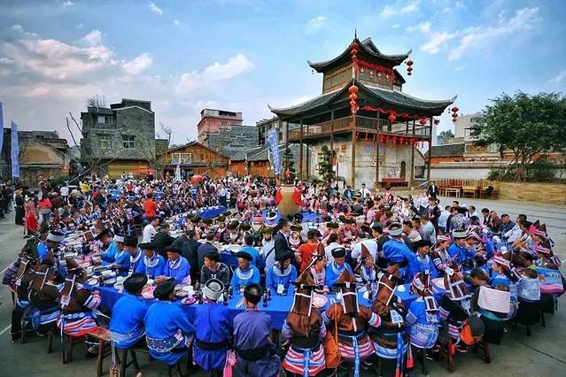 布依族同胞欢聚一堂,身着节日盛装,唱着敬酒歌,为游客们敬上香甜的米酒。大家精心准备了纺纱织布、耍水龙、竹筒传情、 打糍粑、八音坐唱、打糠包等布依族民俗活动。