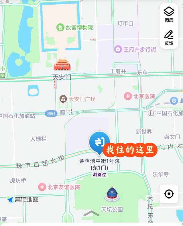 北京的地价果然是首都,400多二环内就只有10多20平的商务酒店,1.2的双床,还可能无窗,同样的价格我选的民宿。关于位置就在天坛,和前门大街附近,地铁站就在小区门口,超级方便,去天安门骑共享单车就去了。