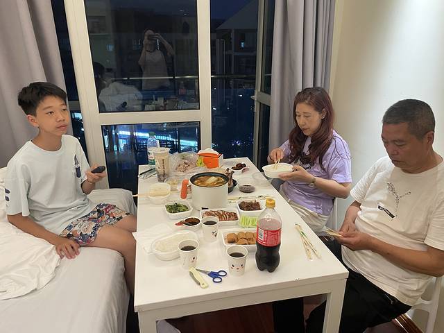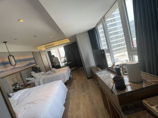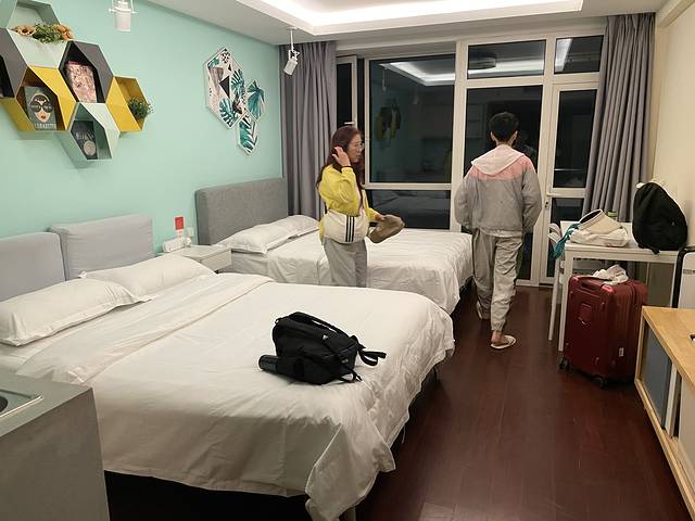 两个1.5的大床,52平米的房间,还有冰箱,洗衣机,外加一个小阳台,我们4人,刚好合适。