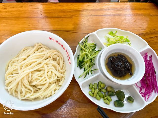 从故宫大门出来不走回头路,正对面就是景山公园。由于我们都饿了,就在附近找了一家老北京炸酱面。尝试一下传闻中的炸酱面,还有试外地人不能轻易尝试的北京豆汁儿,是不是真的那么独有韵味,然后再去景山公园。