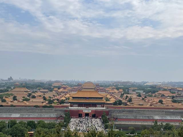 攻略都说了, 出故宫直奔景山公园,到山顶看故宫全貌。2块钱的门票很值得。里面也不大,确实走了40多分钟就到山顶了。