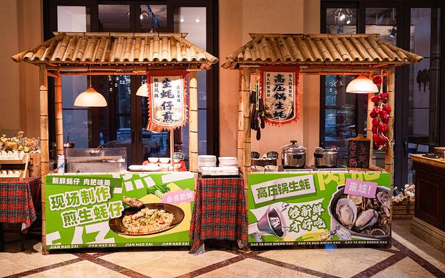 美林湖温泉大酒店湖畔自助餐厅的自助餐,汇聚了全球美食,鲜嫩肥美的海鲜、滋滋冒油的烤肉、色彩缤纷的甜品,还有应季的新鲜果蔬,.应有尽有,种类丰富到炸!每一口都是对味蕾的极致诱惑,让你扶墙进扶墙出不是梦。