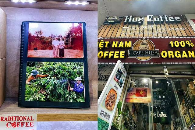 👍推荐一家藏在法国殖民风格老楼二楼的咖啡馆,Dinh Café(复古天台观景),一个充满岁月痕迹的怀旧空间,整体装修有着年代斑驳感,墙上还展示鸡蛋咖啡做法以及店里以往旧照片,穿过大厅直出阳台,看着楼下车水马龙,不远处金光闪烁如碎月的还剑湖湖面,感觉在这个空间神奇的把过去与现代随意切换,把时光定格在每一刻。
