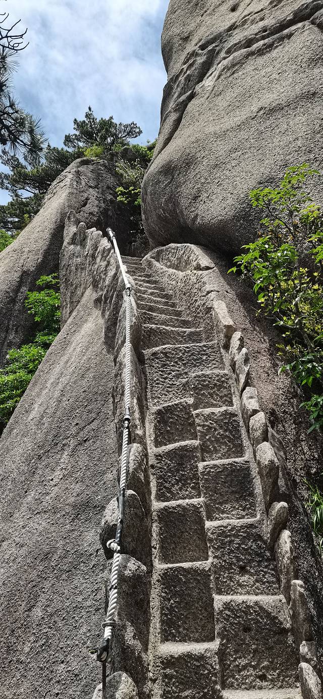 通向天都峰陡峭的踏步