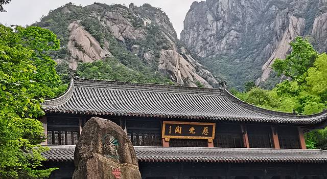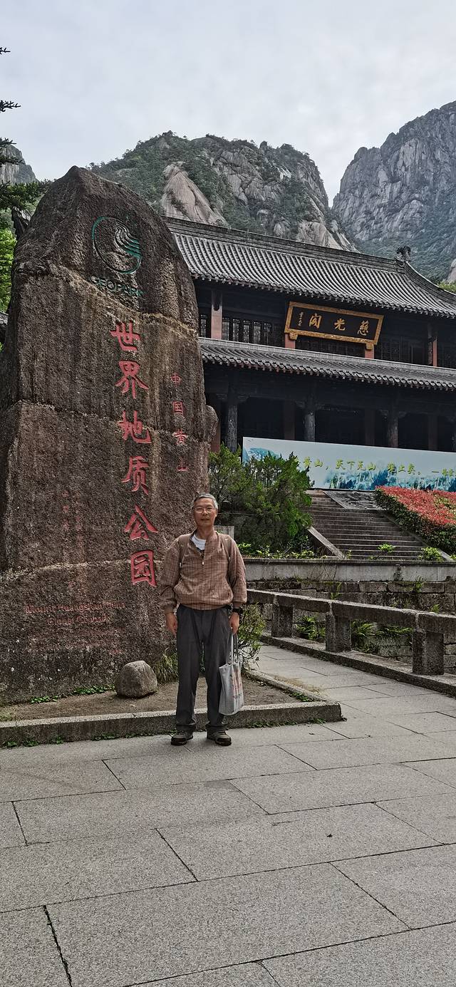在入口处稍休息一会儿后开始登山,此处还没有真正进入景区内,经过从慈光阁及黄山石碑,开始进入登山台级的行程。
