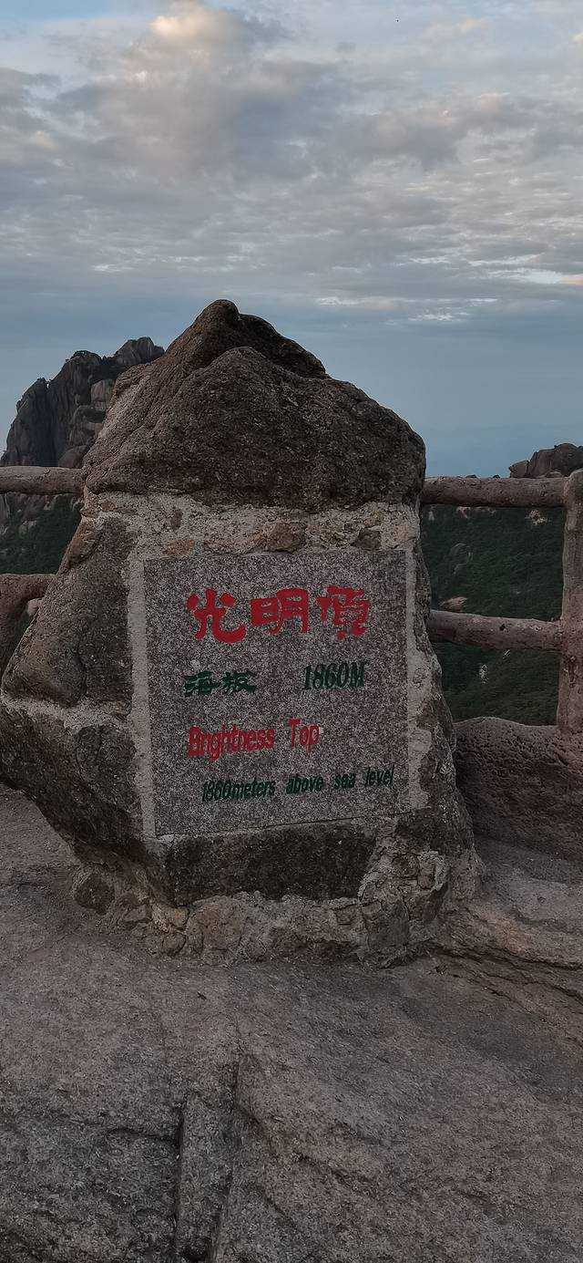 从白云宾馆~到光明顶,约508级台级,用时30分钟,光明顶海拔高度为1860米。在白云宾馆A区大堂出来,向前几十米左转就是通向光明顶的台级。在光明顶向西的路是通向飞来石、回音壁等景点;而向北的路是通向团结松、猴子观海景点方向的。