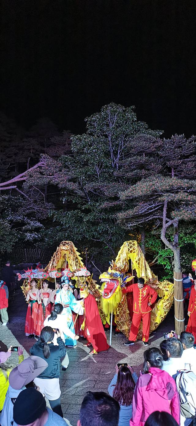 今天的登山行程结束了,晚餐后,白云宾馆有徽州文艺晚会演出,有徽州剧双人唱和舞龙等,时间约为30分钟,从19点20分开始。观看完演出回宾馆洗浴减轻一下疲劳,然后安排一下明天的行程,睡觉。
