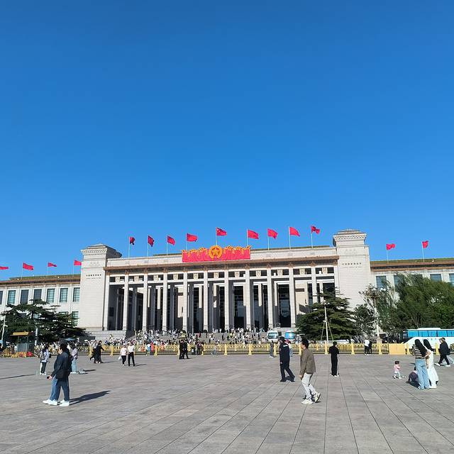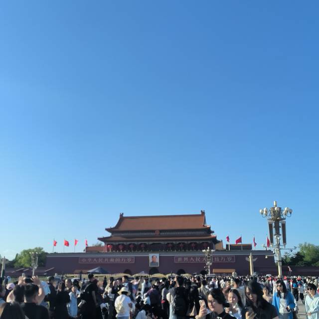 担心天安门广场附近不好停车,打车过去10多分钟,放假期间道路管制比较多,司机把我们放到前门东路,预约的安检入口就在马路对面,可人太多,入口改为单向通行,需要沿着前门东大街向东走两个路口再折回来,幸亏给娃带了小推车。