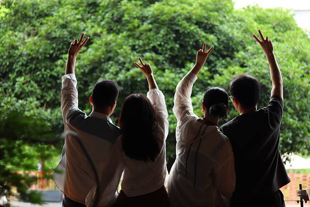 饭后,抵达陶溪川文旅景区南门,沿着集市一路乱逛,基本是陶瓷手办或者周边产品,红砖绿树确实比较有文艺氛围,雨一直下并没有停的意思,边往民宿走雨势越大,抵达民宿稍作休息开始夜宵,队伍之中有个山东大哥,点了淄博烧烤(🌟🌟🌟🌟),小葱就饼,越吃越上头,四个人喝了八瓶啤酒+2瓶奶啤,烧烤结束掼蛋到11点半,那会雨还在下,想着第二天自驾望仙谷感觉要泡汤。