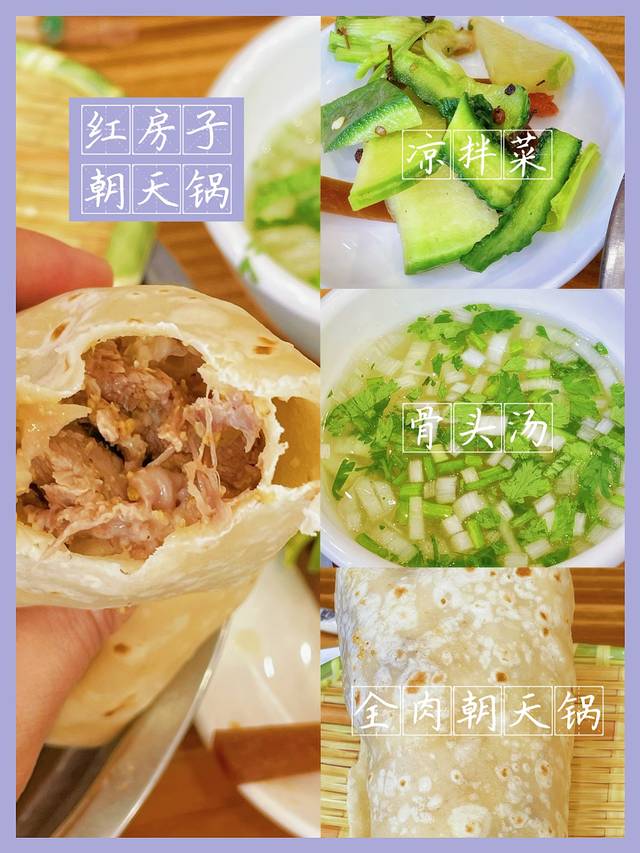·全肉朝天锅:饼卷肉,嘎嘎一阵炫,很顶饿,肥瘦相间,还有芝麻还是花生碎,好吃好吃,老汤用骨头熬的一口下去就满足了
