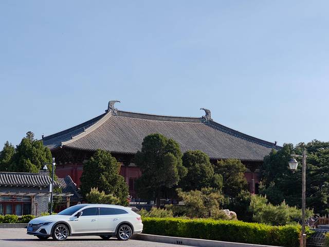 在停车场位置,远处的就是奉国寺大殿,从外观看很像唐代建筑