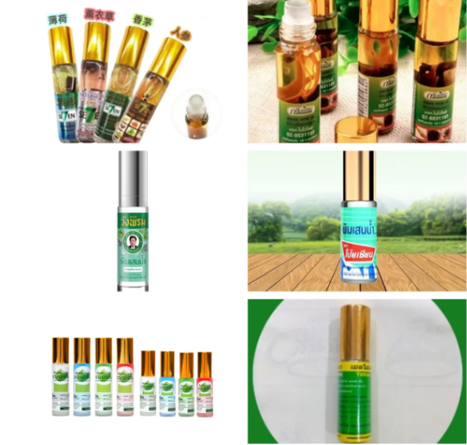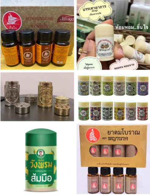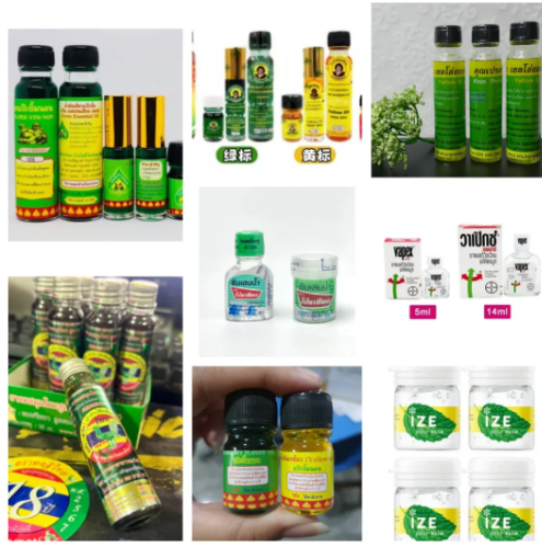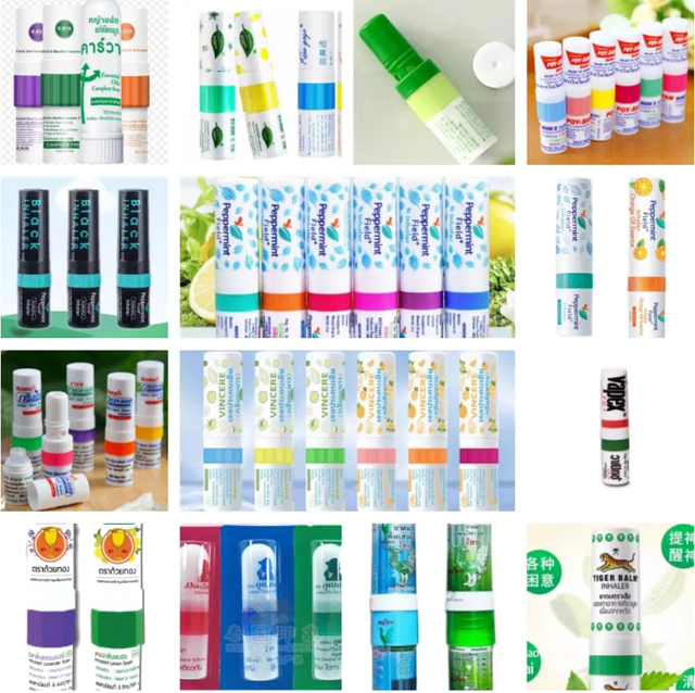 就是经常在网上可以刷到的筒状的鼻通,上面带有薄荷气味、樟脑气味。具有提神醒脑的功效,如果在泰国中暑了,闻一闻会非常舒服!而下方则是薄荷腦、薄荷精油,被蚊虫叮咬后,涂抹在被咬处可以起到止痒作用。当然也可以涂抹在“人中”处,也可以提神醒脑哦!下面就是泰国各个著名品牌的筒状类的鼻通,一起来看看有没有你认识的吧!