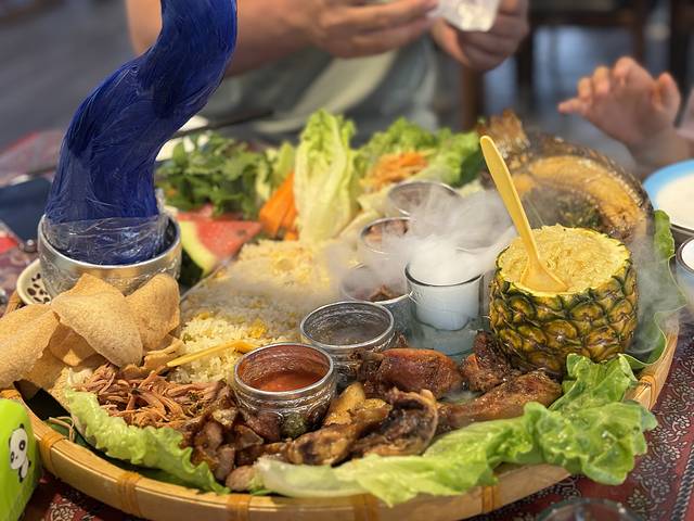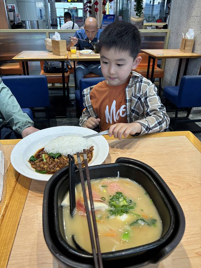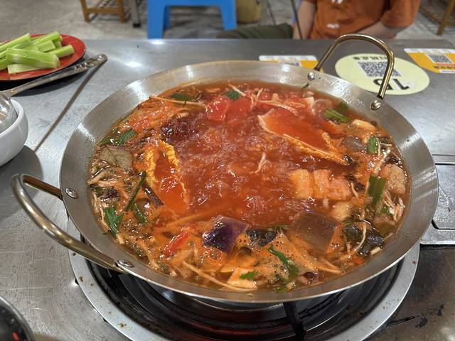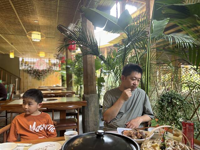 这家店,是我们绕了一大圈选中的小店。宝藏呀,酸汤牛肉锅,里面十几种香料。没有冒进的体验木姜子口味。第一次吃这么美味的鲜切鲜果牛肉锅,伴随着普洱清凉的晚风,那感觉会记在心里。那个小孩总也不会尝试新食物……