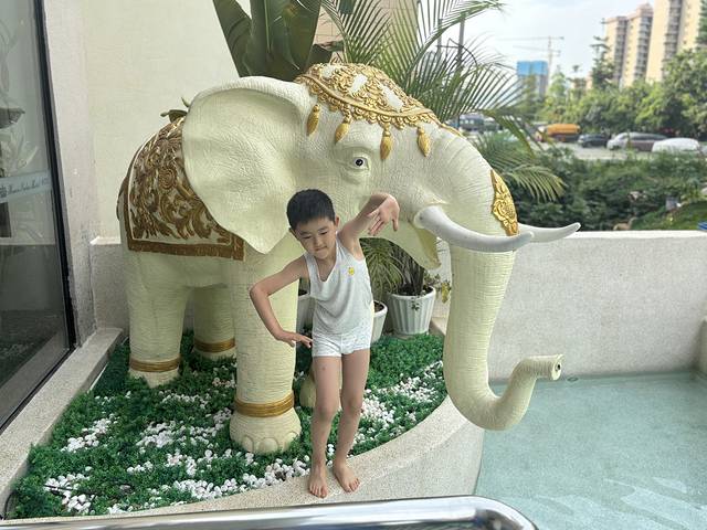 不得不夸一夸我们西双版纳住了三晚的酒店,有小朋友特别喜欢的水池,房间里有个侧位的沙发是他喜欢栖息的地方,早餐也不错,服务人员态度特别好