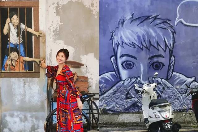 槟城可以说是壁画之城,乔治市中心的壁画街可是名副其实的槟城地标,记得一定要跟着壁画内容合拍才有融入感。