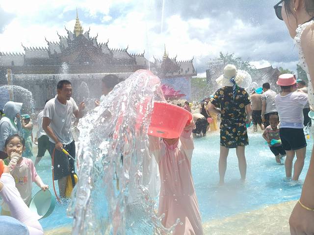 泼水玩到嗨,想体验泼水,这里氛围拉满,专门给游客准备的场地,可以放肆嗨,听当地人说傣族的泼水节是每年4月份的某一天,那时候大街小巷的人们都会到大街上互相泼水送祝福,如果想感受当地人浓烈的节日氛围,可以选择4月份过来。