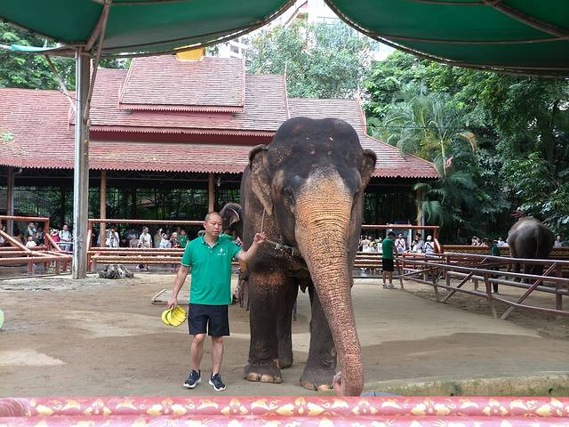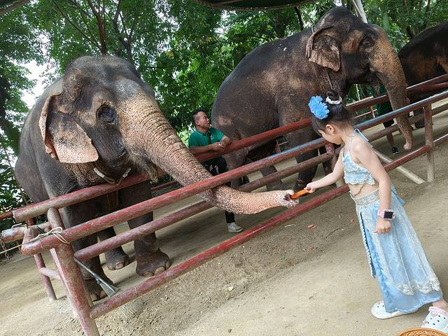办理好入住,我们下午来到了曼听公园,本来想在这里跟拍,但断断续续的一直在下雨,也就放弃了,这里就是一个小公园,里面有一个湖,公园不大,最后 一站是大象表演,小朋友们的最爱,最主要可以个大象近距离互动,表演的大象大概有七八头,最后会留下四只大象跟小朋友互动,投喂的食物需要50元,就是几根胡萝卜和几根香蕉,很快就喂完了,但也很有趣。