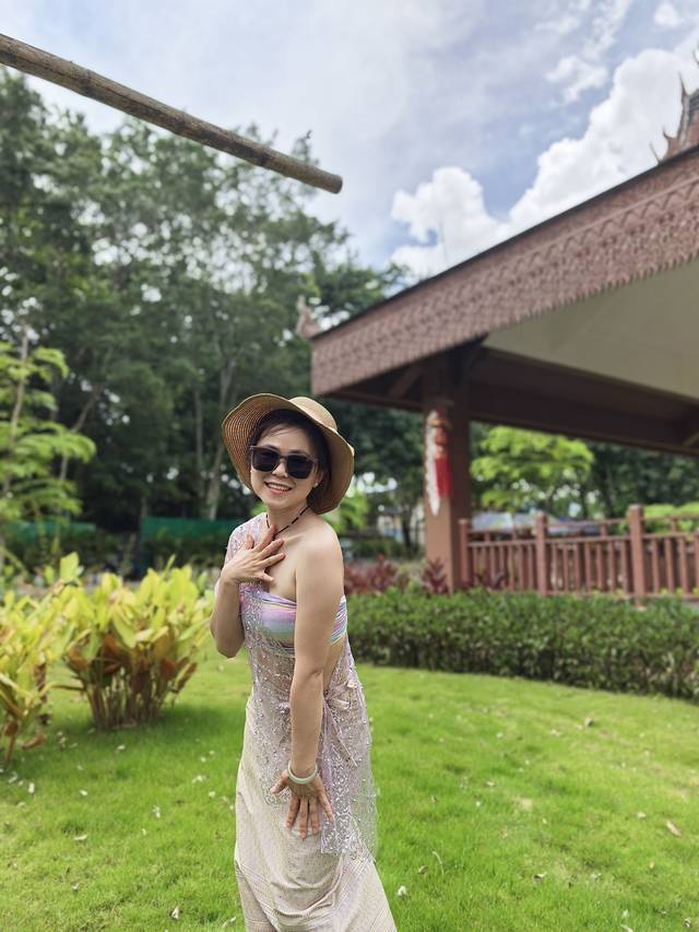 第二天一大早我们打车来到傣族园,在这里有必要说一下,景区门票加观光车是105元/人,但是门口有当地的人会告诉你拿着他们的身份证去是80元/人,拿着他们的身份证去游客中心买票,取票后进入景区再把身份证还给她就行,是一个省钱小技巧。傣族园相当于一个傣族村庄,然后圈起来变成了一个景点,设置了泼水广场,专供游客体验泼水乐趣,总共分为4站,进入大门之后需要乘坐观光车,每个站点有一个景点,如果没有孩子,我建议可以边走边游览,可以深入的了解傣族人的生活环境,里面有很多热带植物,边境码头那里,有很多卖水果的摊贩,据说都是村民,后来对比才知道,这里的水果是最好吃也是最便宜的,我一直认为景区里的水果都很贵,而且不好吃,但是唯独这个不是,这个真的是村民自己种的,很便宜,菠萝5元2个,很甜,完全不涩,菠萝蜜也很好吃,后悔当时买少了,傣族园的水果是这趟旅行最好吃的水果了,如果你去到傣族园,一定要多买点儿带走,不然会后悔,告庄的水果又贵还不好吃。