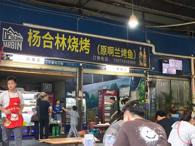 晚上我们找了一家当地特色烧烤,杨合林烧烤,离酒店不远,打车大概10几块钱,这家烧烤很多人拉着行李箱来吃,应该是名气远扬了,跟西安的烧烤不太一样,这边烧烤品类很少,只有大虾,豆腐,西葫芦和一些肉类,需要先拿个筐子自己选择想要烤的菜品,罗非鱼不用选,直接告诉老板要几条即可,一条7元,结算之后让师傅再烤。烤鱼不放调料,需要蘸蘸料吃。