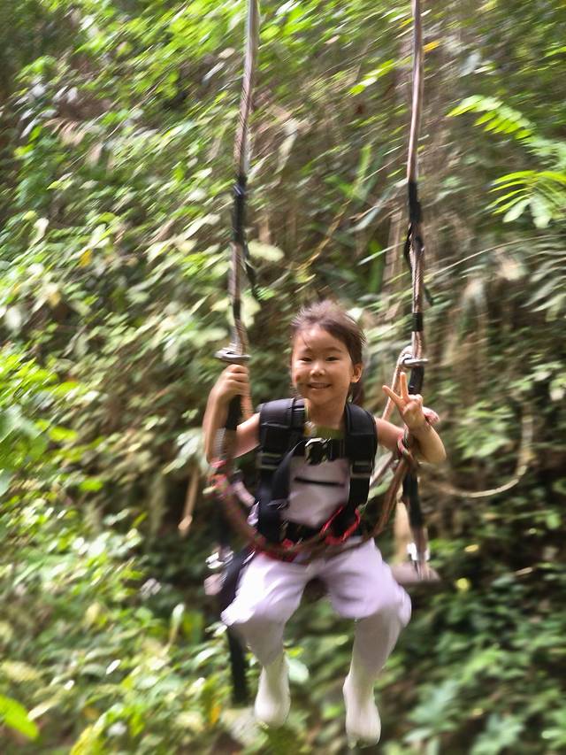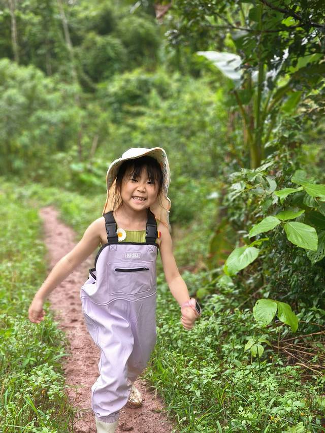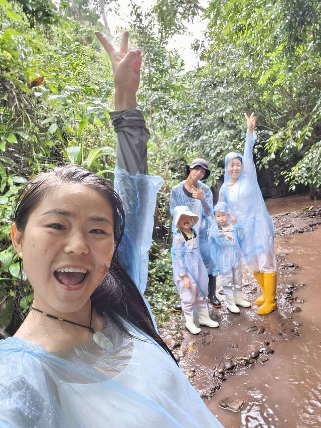 今天的项目是本次旅行的重头戏,也是我们最期待的环节—基诺山雨林徒步,穿梭在云南的雨林,会看到北方见不到的神奇动植物,提前买好的雨鞋和涉水服也在这个时候派上用场,提前在携程定好行程,前一天晚上会有司机联系第二天什么时候出发,我们报的2大2小四人团,时间相对来说自由一些,因为我们带着孩子,所以推迟到10点出发,一大早在酒店吃完早餐,司机就准备在酒店门口接我们,路上大概需要1个小时的样子,我们比别人晚出发大概一个小时,路上基本没什么车,我心里一度非常忐忑,因为这个地方离缅甸很近,这个司机带着我们走在泥泞的小路上,往山里开去,前后都没有其他车辆,脑海里不停的浮现有人被拐到缅甸的新闻画面,就是穿过这种树林,正在我胡思乱想之际,我们就来到了基诺山脚下,到达目的地才发现游客其实挺多的,有好几队人跟我们一起进入基诺山,给我们带队的是一个小哥哥,刚好20岁,一路上给我详细讲解了基诺山的植物,仿佛打开了现实版植物百科全书,我们大人和小孩都玩的很开心,但是天公不作美,途中遇到大雨,山里没有避雨的地方,再加上雨下的太大容易发生山洪,不得不冒雨前进,就错过了很多有趣的事情,留下了一点小小的遗憾。