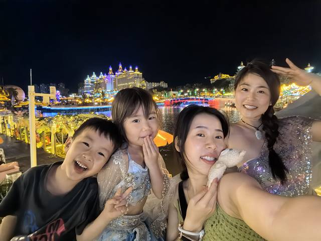 酒店免费送的旅拍,前一天晚上计划的好好的,一共五张照片,我们四个人拍一张合影,然后两两一拍,结果到拍照的时候,小妍非要化妆,大人300,小孩200,我觉得不划算,我跟她讲了很多道理,就是不听,最后还委屈的哭了,这个状态完全不适合拍照了,最后只能放弃了