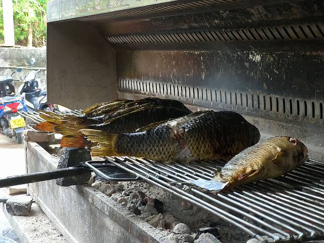 照片拍不出来,很大一条鱼,一整条放炉子上烤