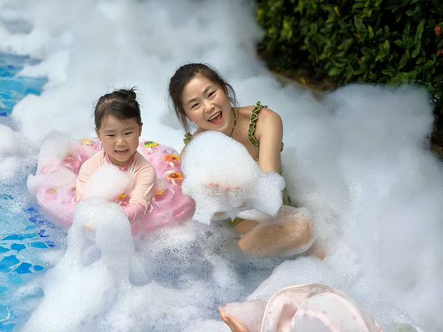 今天是悠闲的一天,没有行程,没有安排,体验了酒店的泳池泡泡趴,舂芒果