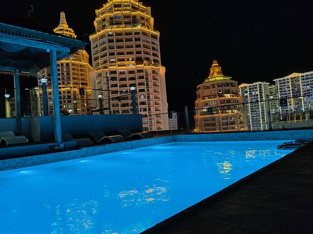 夜晚酒店顶楼的泳池,晚风吹着,很舒服,就是安静的坐着,也让人感动无比放松