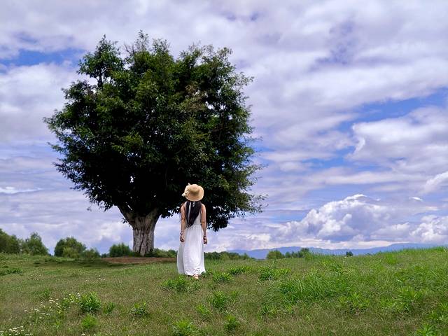 很喜欢我给朋友拍的这张照片,刚好快中午的时候蓝天白云都出来了,很出片,为了拍这张照片,不小心踩了蚂蚁窝,感觉腿上痒痒的,以为是草在腿上划过,低头一看,一腿的蚂蚁,吓得我赶紧往路上跑,费了好久的功夫才把蚂蚁打掉,第二天就长了很多红疙瘩,那里的蚂蚁毒性挺大,拍照的时候一定要注意呀
