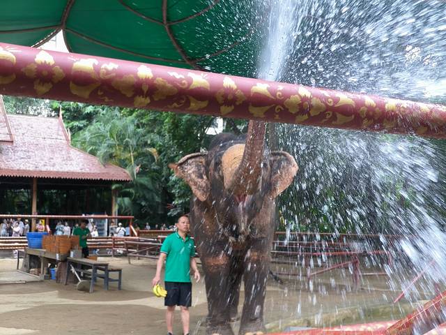 最后一个环节是大象给游客喷水,接受大象的祝福