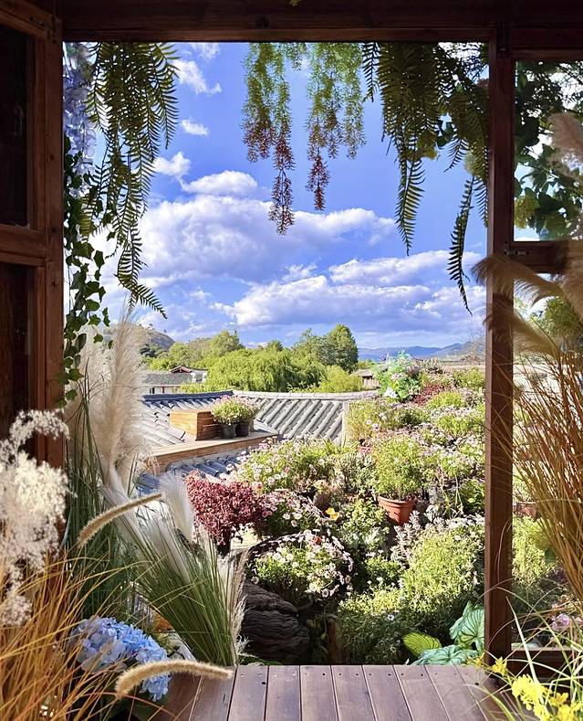 最出片的就是这扇鲜花窗啦有露台还能看到雪山