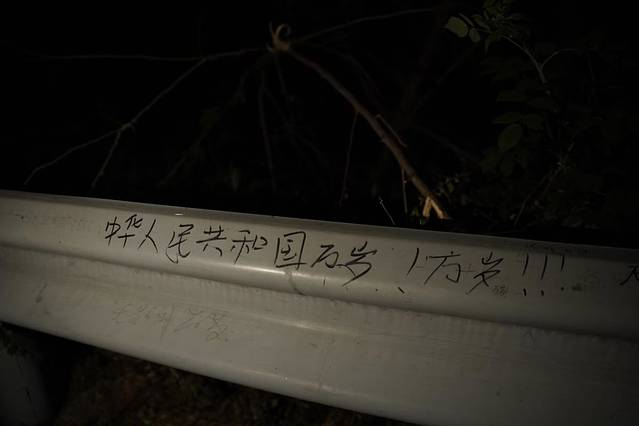 夜爬人以年轻人为主,你完全不用怕会孤单啥的,一路上可有伴了,走着走着就会遇上前头的人,或者被后面的人追上,还有人一路放"凤凰传奇",真的笑发财,而且路上的栏杆上写满了"弹幕"